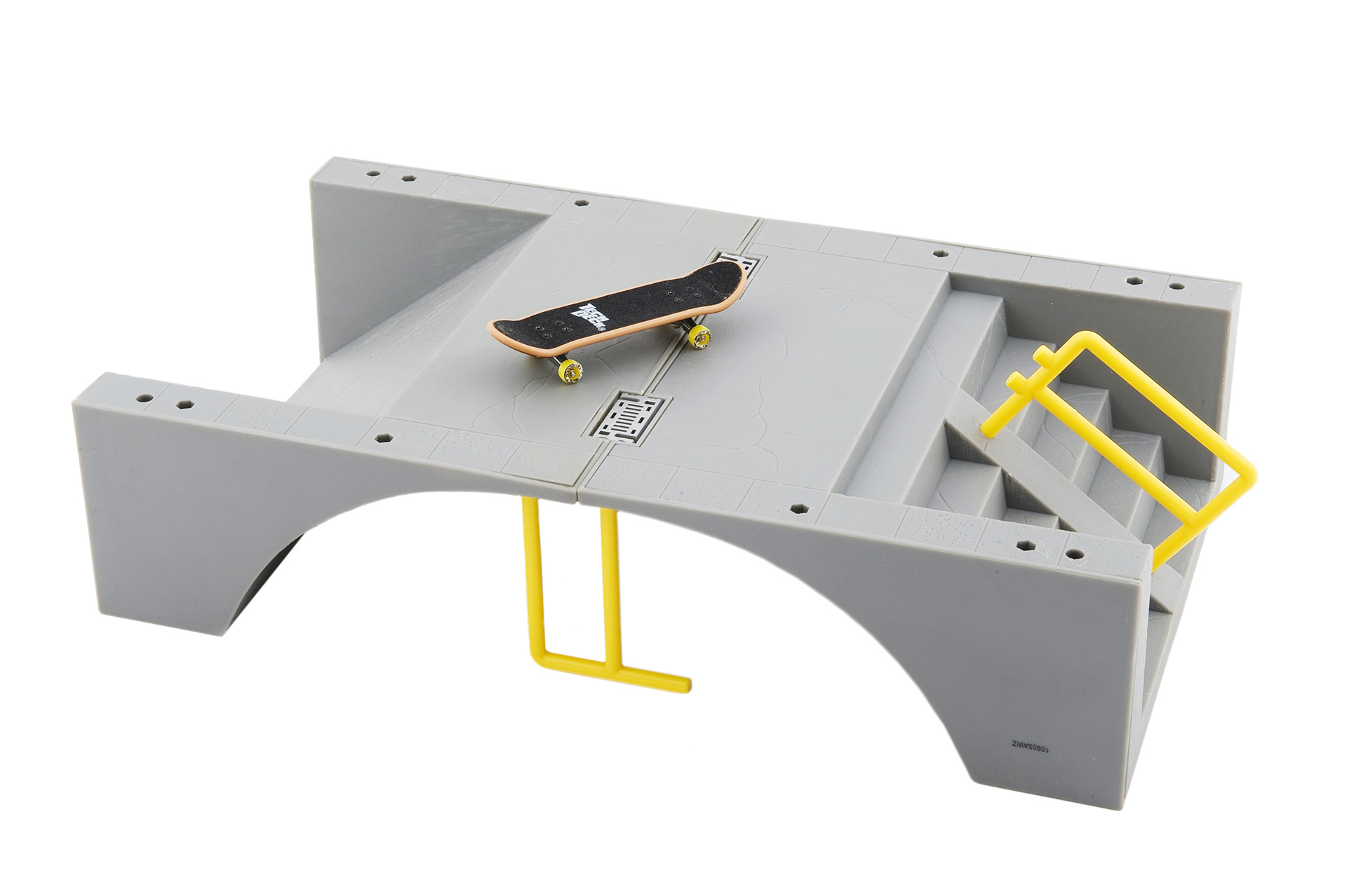 The Tech Deck Triple Set Combo Ramp folds into 3 different configurations; 1st a Mini ramp half pipe and then by flipping it over, a drive way & stair set is created from the negative space of the halfpip. Then fold it one more time and a Spine/Jersey barrier is created. I Invented this item and built a working prototype model whilst working for Fuse London Ltd. Item is licensed by Spin Master. All rights ©Fuse London Ltd & ©SpinMaster.